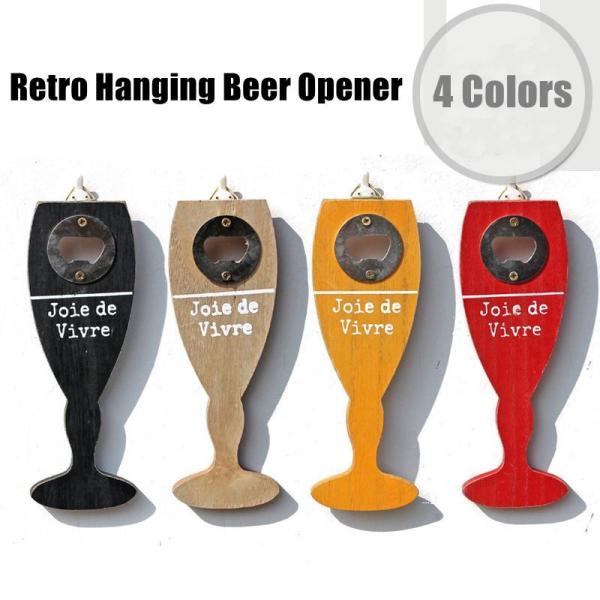 Wholesale vintage style wooden wall hanging bottle opener beer opener for home decor